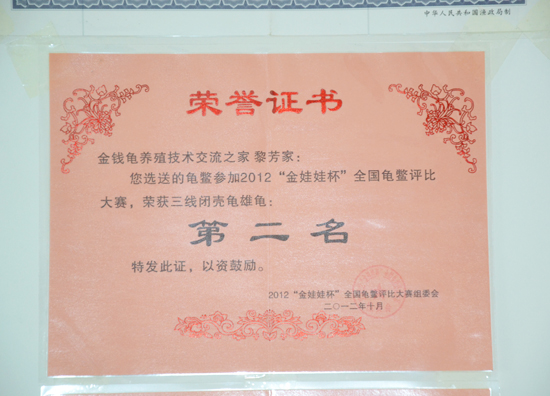 上一篇:荣获2012年“金娃娃杯”全国龟鳖评比大赛三线闭壳龟雌龟优秀奖